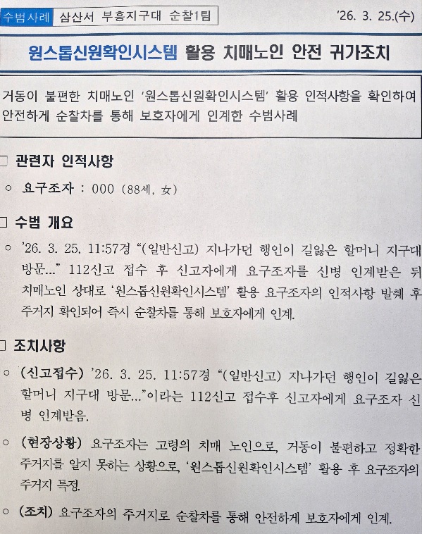 원스톱신원확인시스템을 활용하여 치매노인 귀가한 사례